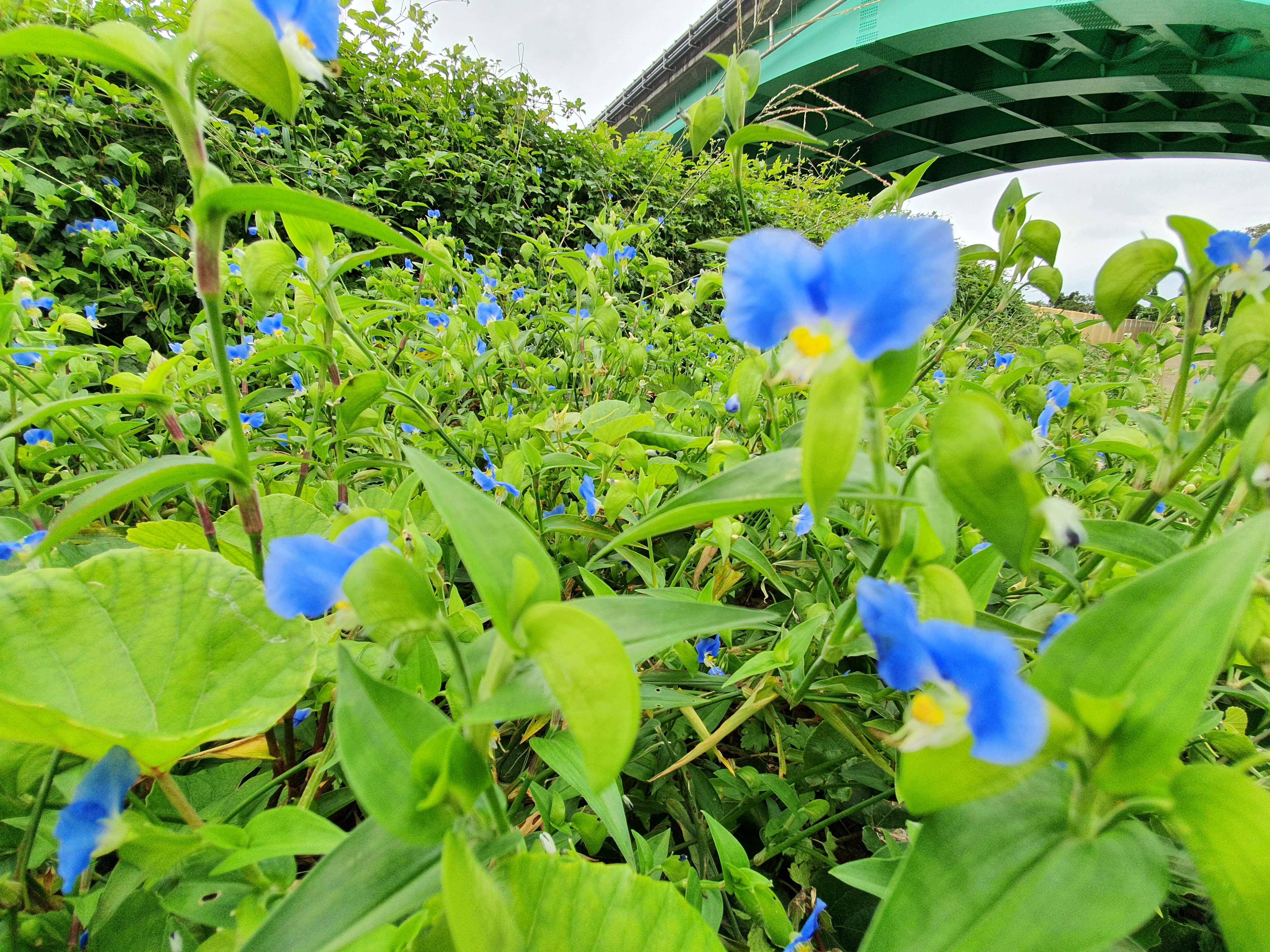 닭의 벼슬의 모양을 하고 있어 닭의 장풀이라는 이름이 붙은 달개비가 가득 피어 있습니다. 아침에 피었다가 오후가 되면 꽃잎이 사그러지는데, 그래서 영어로는 Dayflower 라고 불립니다.