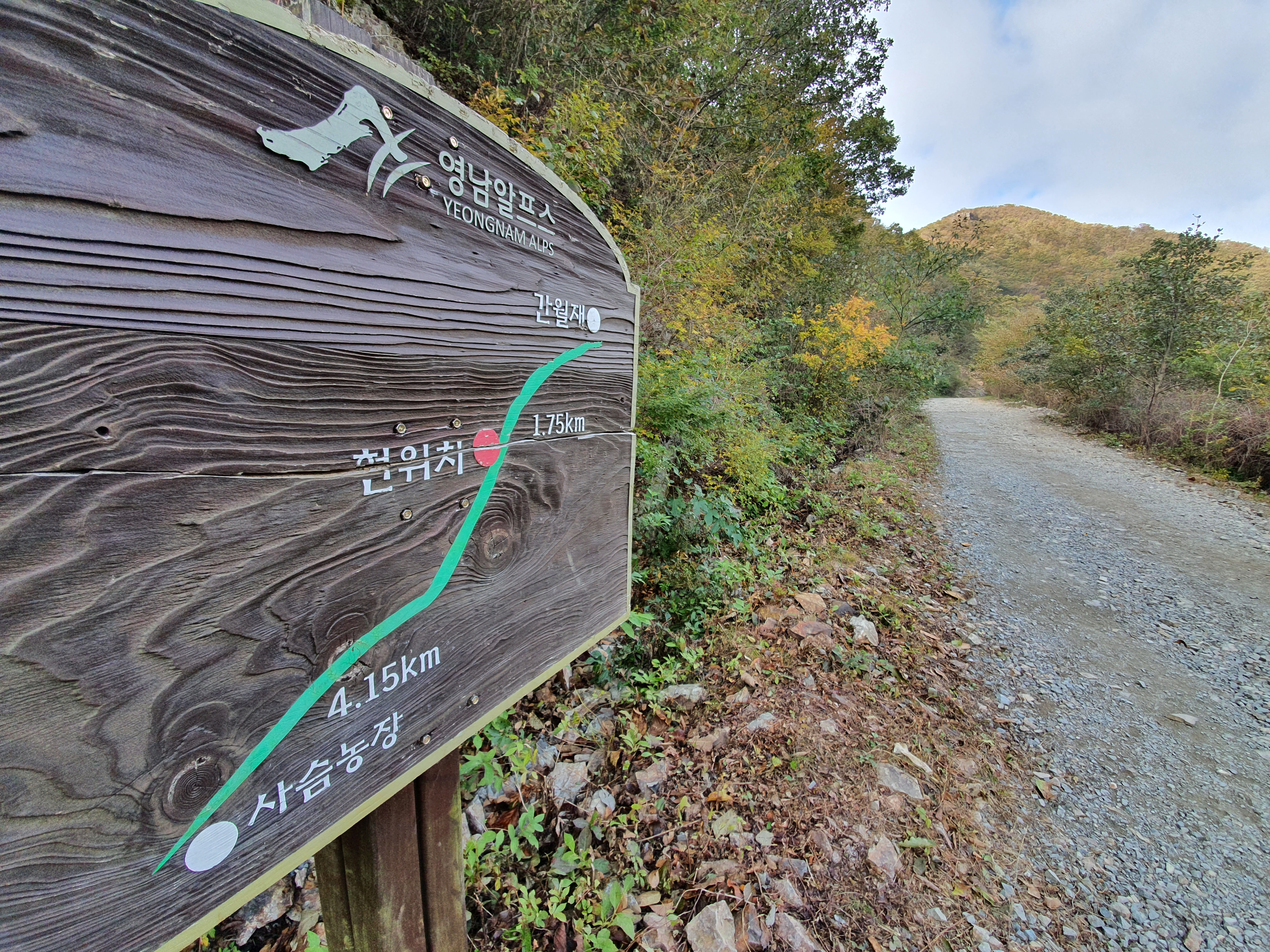 주변 구경을 하다보면, 이번에는 4.15km 지점을 통과합니다. 간월재에 갈 수 있는 가장 쉬운 길이죠.