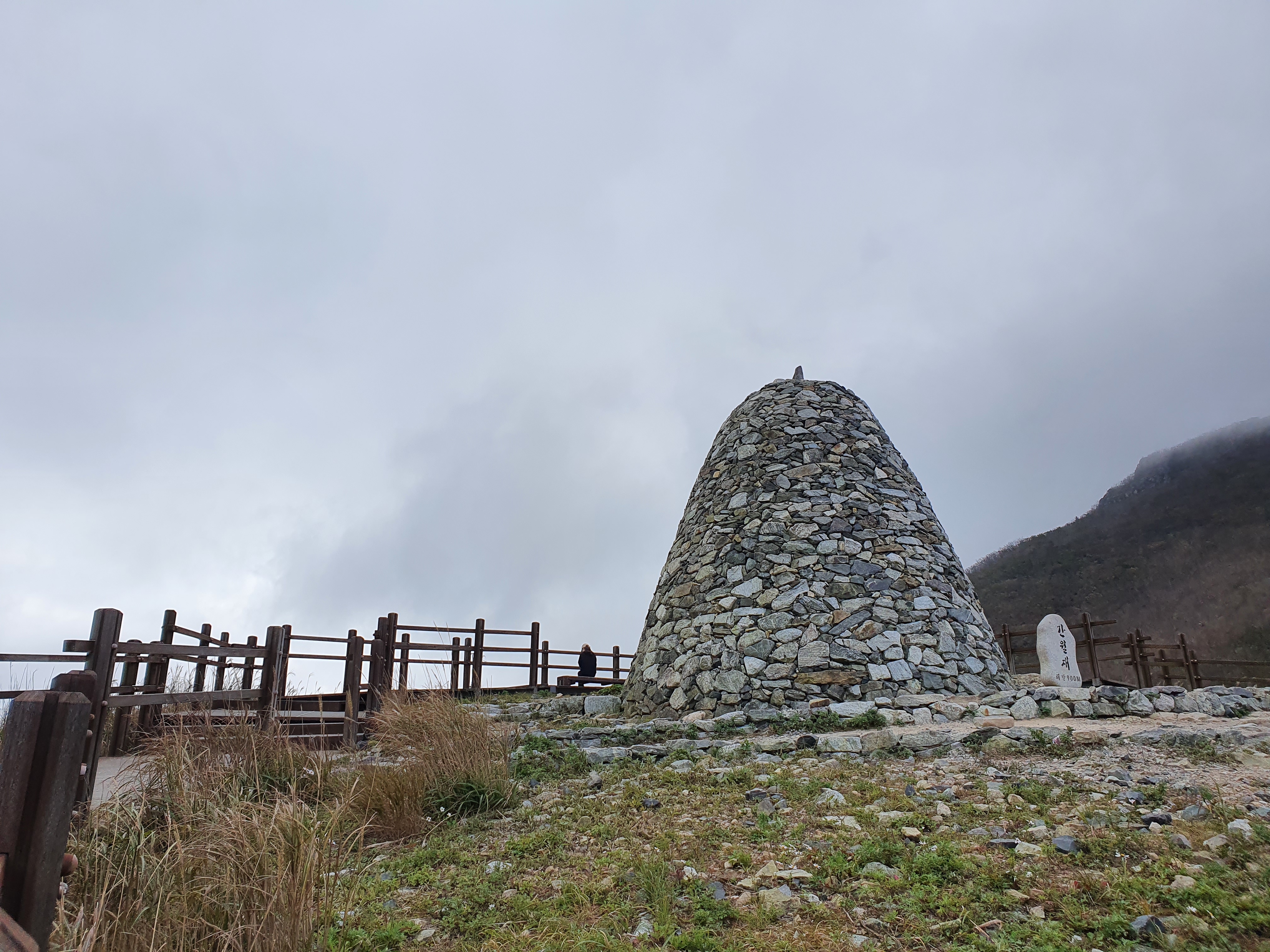 간월재 돌탑은 해발 900m에 위치해 있는데, 산 아랫쪽에서 봐도 이 돌탑의 모습은 확연히 구불할 수 있습니다. 몇년전 지진때 무너진 것을 다시 복구한 상태인데, 이제는 또다시 무너지는 일은 없어야겠죠.