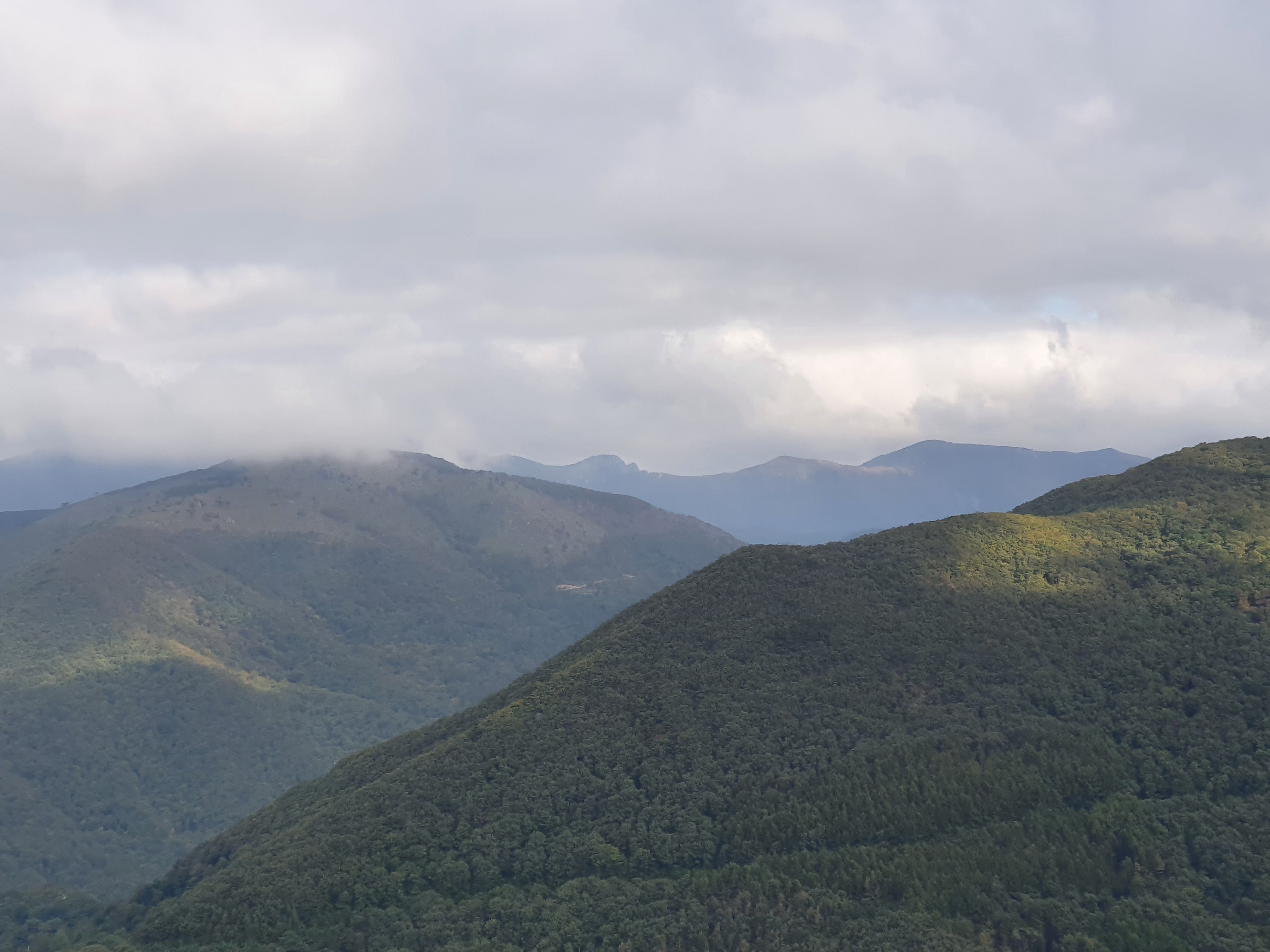 산 뒷편으로 구름이 빠르게 움직이는군요.