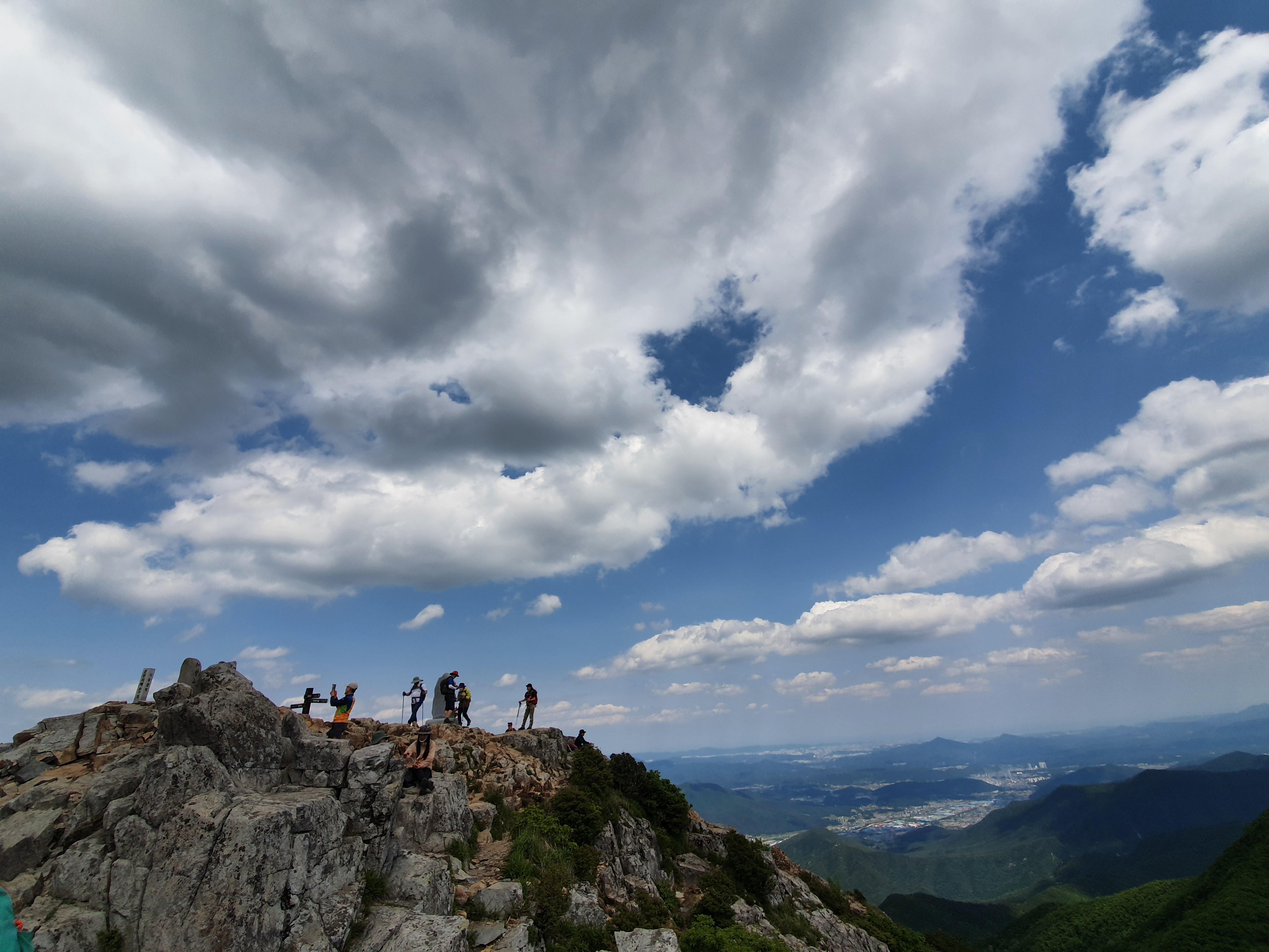 정상석 근처에 많은 등산객들이 인증을 위한 사진을 찍고 있습니다. 힘들게 오르고 올랐던 고생을 한꺼번에 보상받는 순간이겠죠.
