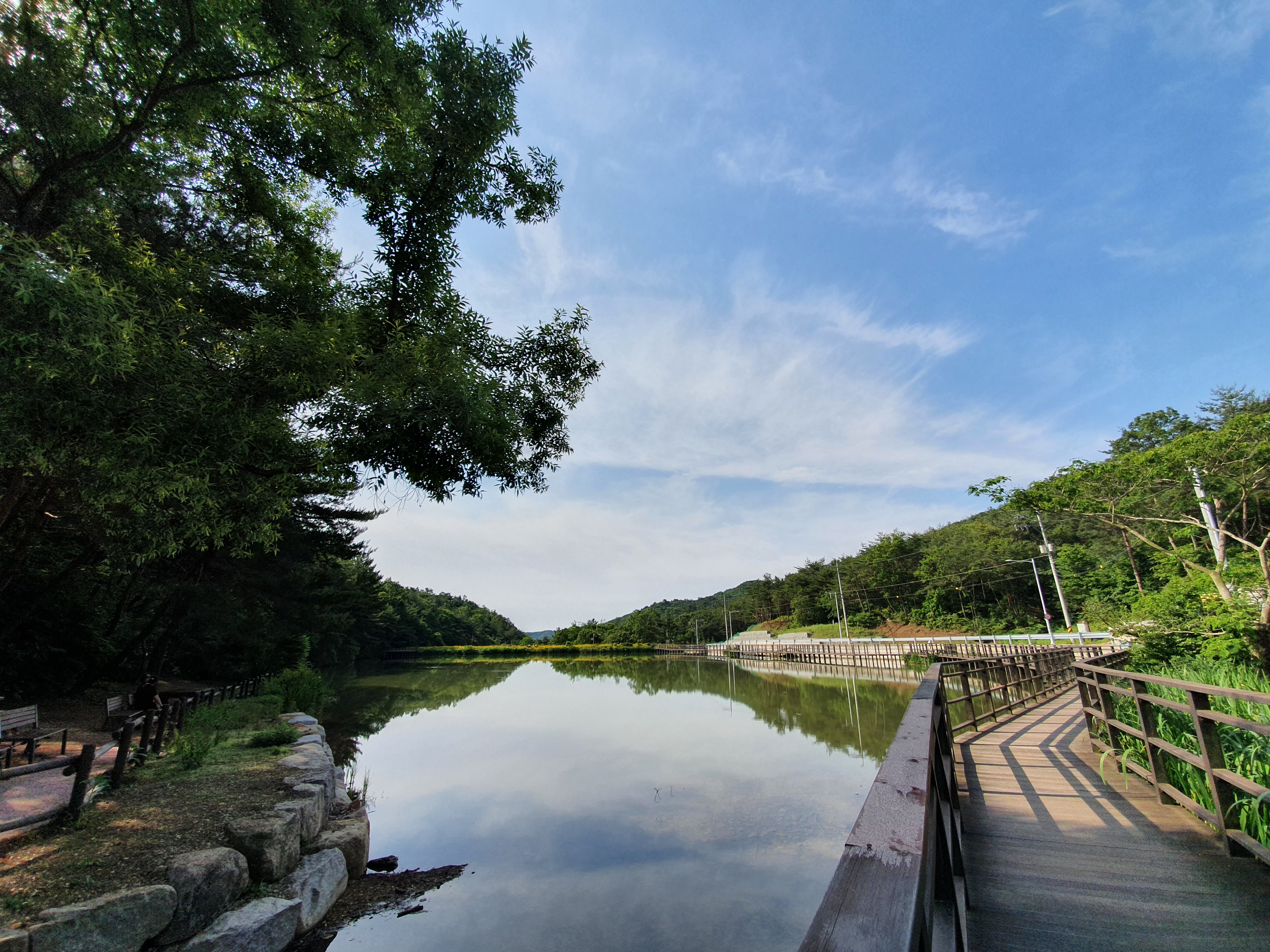 거울처럼 하늘을 반사하는 만석골 저수지에서 출발합니다. 진입로를 옆으로 새로 내면서 접근성과 주차하기가 굉장히 편해졌지만, 방문객이 많아지는 주말 오후에는 불가피하게 갓길 주차를 할 수 밖에 없겠더라구요;;;