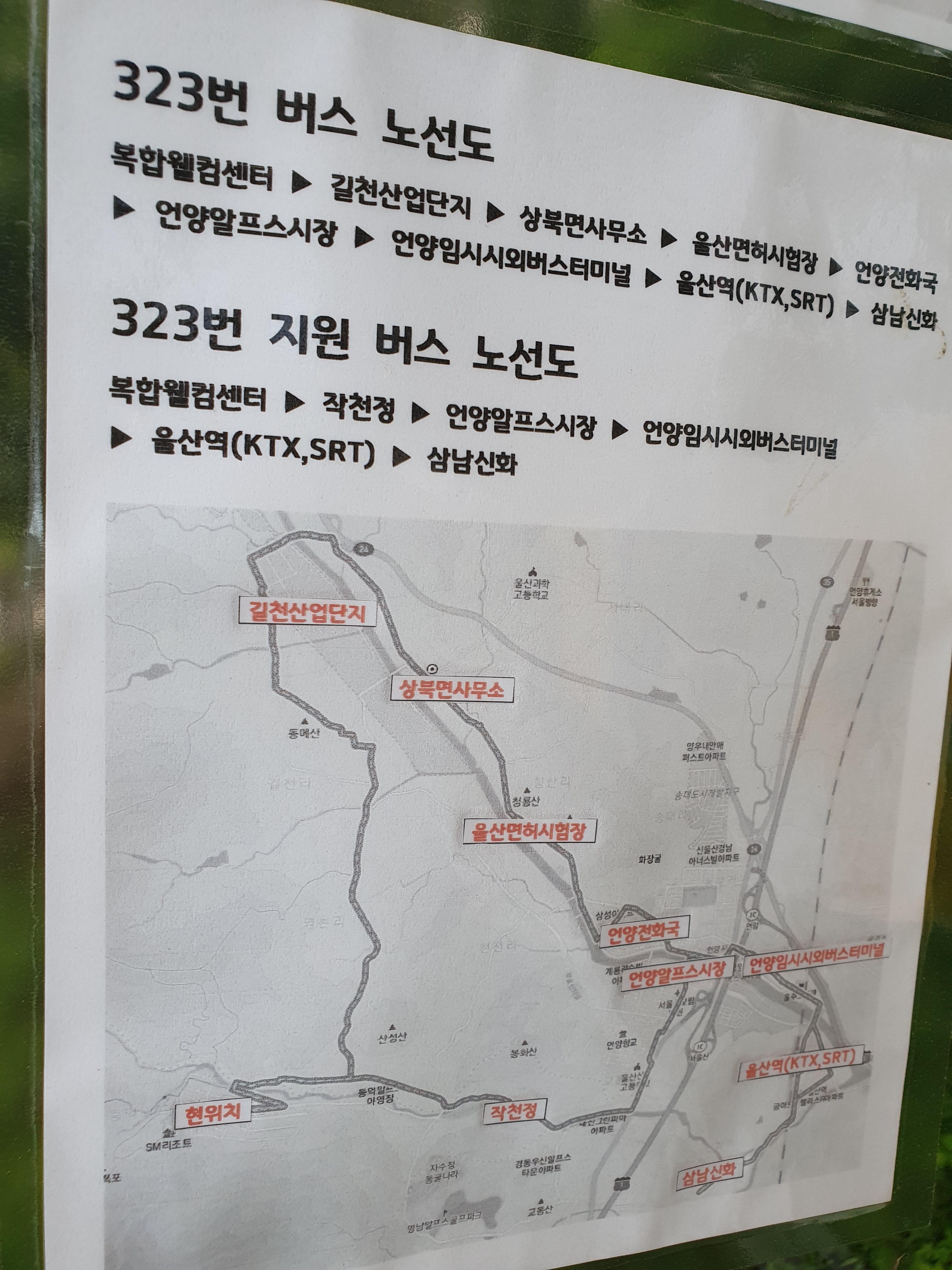 304번, 323번 버스를 타고 종점인 복합웰컴센터에 하차하면 되는데, 다만, 버스가 하루에 몇 차례 운행을 하지 않으니 이동 시간을 잘 맞춰야 할 것 같네요.