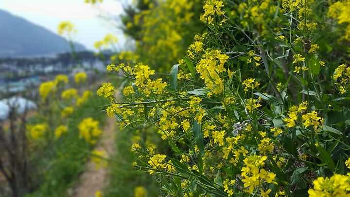 [걸어가는 길 좌우에 유채꽃이 만발했네요]